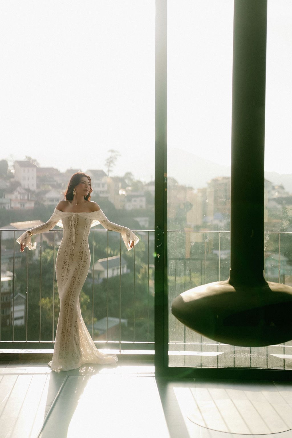 Từ ban công rộng, toàn cảnh đồi núi hiện ra với vẻ hùng vĩ vốn có, mây trôi lững lờ, những dải đồi xanh thẳm và khoảng trời mở phóng khoáng — tất cả hòa lại thành một bức tranh yên ả, nơi tinh thần “sống chậm” trở nên trọn vẹn.