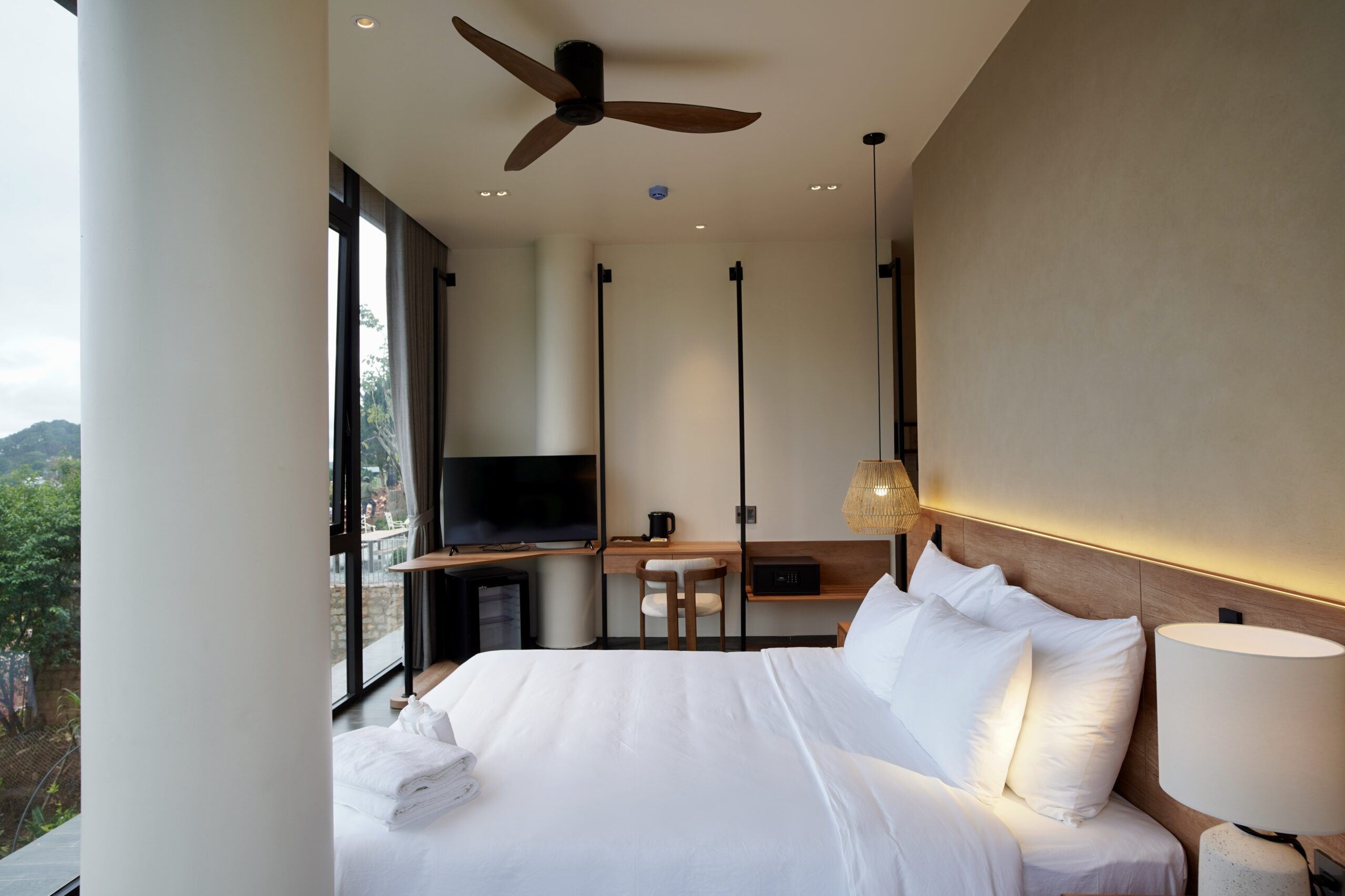 Trải nghiệm không gian 33m² tinh tế với giường Queen êm ái, bồn tắm thư giãn và tầm nhìn panorama rộng mở. Thiết kế hiện đại hòa quyện cùng ánh sáng tự nhiên, mang đến sự thoải mái và lãng mạn, lý tưởng cho những khoảnh khắc nghỉ dưỡng trọn vẹn
